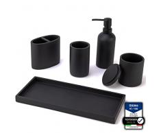 SHINE Set Bagno 6 Pezzi Accessori, Nero, 27,9 x 24,9 x 19,1 cm
